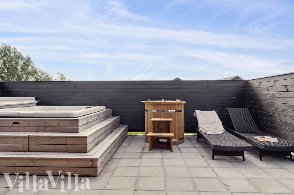 Utomhus väntar en oas av välbefinnande. Husets trappbyggda utespa, utebastu och duschar ligger på terrassen, där ni kan koppla av under den öppna himlen och lämna vardagens stress bakom er. På den delvis övertäckta terrassen finns det trädgårdsmöbler, fatboy sittsäckar och grill, där ni kan laga läckra måltider. För de yngsta gästerna finns det studsmatta, gunga och ett lektorn i trädgården.