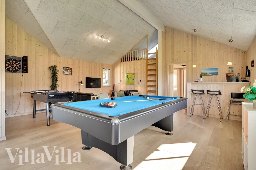 Detta vackra lyxhus ligger vid Skåstrup Strand nära den trevliga handelsstaden Bogense. Det finns möjlighet till både härliga naturupplevelser och spännande attraktioner på Fyn – och till en massa inomhusaktiviteter, om du väljer att semestra i detta lyxiga poolhus. Husets poolavdelning rymmer en 18 m2 stor pool med motströmsanläggning och rutschbana. Här finns också spabad och bastu som ger värme under de kallaste dagarna. I husets stora aktivitetsrum kan ni tävla i flera olika aktiviteter. Här finns bordtennis, biljard, fotbollsspel... Läs mer