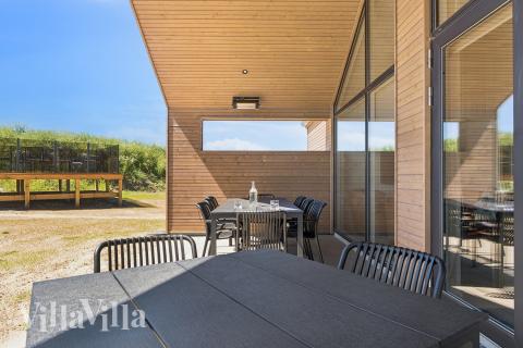 När det är dags för måltider kan ni samlas i det rymliga sällskapsområdet, som är inrett med ett långbord med plats för alla. Köket är ett XL-kök med två ugnar, två kylskåp och två diskmaskiner, så matlagningen blir en lek, även för stora sällskap. Utomhus kan ni njuta av den härliga träterrassen som är inredd med en bubbelpool, dusch och bastu – perfekt för avkoppling i det fria. En del av terrassen är övertäckt, så att ni också kan njuta av att vara utomhus i skydd från solen eller från en sommarskur. Barnen kommer att älska den härliga trädgården, där de kan hoppa på studsmattan eller gunga i gungställningen. Dessutom finns här både grill och trädgårdsmöbler, så att ni kan tillbringa långa kvällar med middag utomhus.
