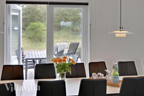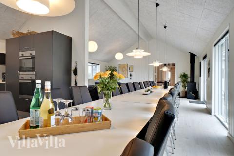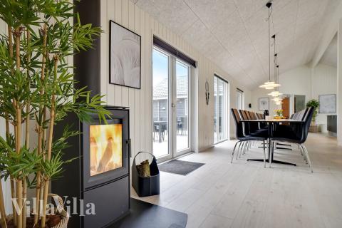 Här har det byggts ett lyxsommarhus med känsla för detaljer och utan att det har sparats på krutet! Sommarhuset ger de bästa förutsättningarna för en trevlig semester för hela den stora familjen eller för flera familjer som vill semestra tillsammans. Sommarhuset ligger naturskönt beläget vid Venø Bugt som är en del av Limfjorden. Området är perfekt för naturälskare, som både sommar och vinter kan njuta av långa, raska promenader i orörd natur. Nära sommarhuset ligger en vacker barnvänlig sandstrand, som har fått blå flagg tack vare det grunda och lugna vattnet. Orten Skive ligger endast 20 kilometer österut.