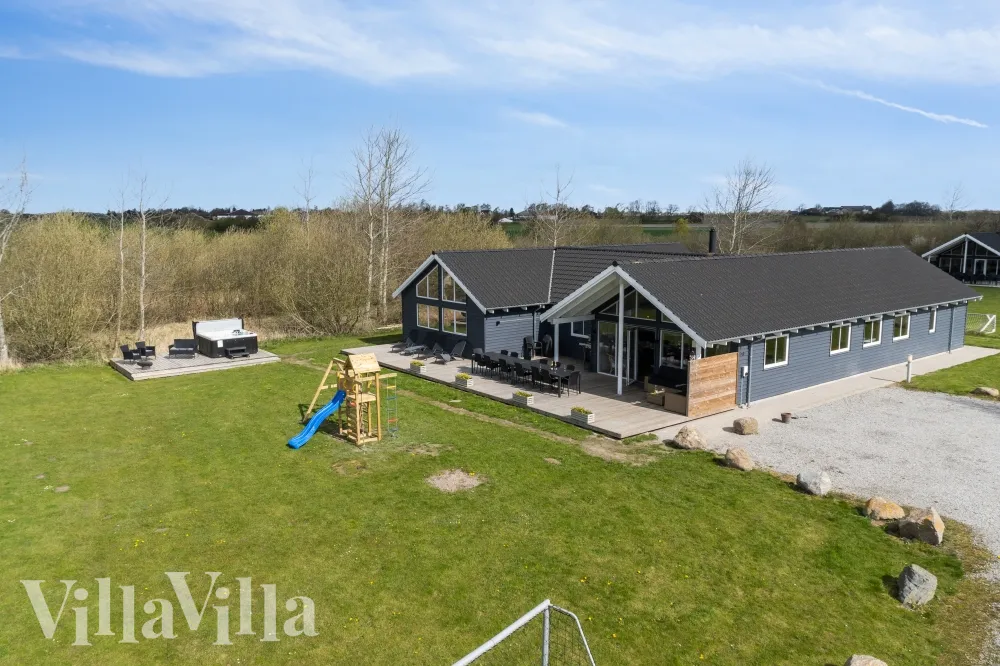 Denna speciellt välutrustade stuga ligger nära den fina sandstranden i Marielyst. Huset har ett eget vattenland som är ett paradis för både stora och små vattendjur. Det har en pool på 18 m2, motströmsanläggning och vattenrutschbana. Detta suppleras med ett varmt spa-bad med plats för 4-6 personer och bastu. I huset finns även ett fullspäckat aktivitetsrum med biljard, bordtennis, fotbollspel, airhockey, dart, Wii U och Playstation 5. Den naturliga samlingspunkten, köket – allrummet, ligger i öppen förbindelse med vardagsrummet som... Läs mer