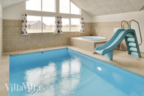 I huset alldeles egna vattenland kan man roa sig i timtal i poolen (18m2) med vattenrutschbana och motströmsanläggning. Det finns också ett elegant spa-bad och en varm och skön bastu.