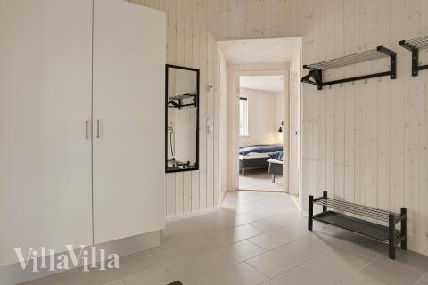 Sommarhuset har en stor och ljus hall med gott om plats för gästernas alla ytterkläder. Totalt har sommarhuset fyra badrum.