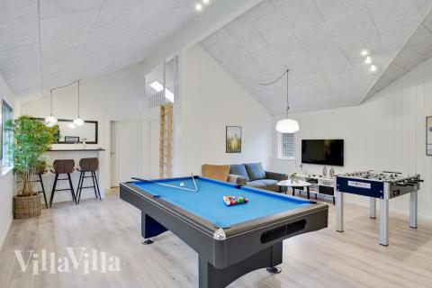 Dessutom finns här ett stort aktivitets- och spelrum. Här kan ni tävla i biljard, bordtennis, bordsfotboll och dart. I soffgruppen vid tv:n finns ett PlayStation 4 där ni kan spela (kom ihåg att ta med spel) eller titta på en bra film. Dessutom kan ni prata lite i rummets bar, där drickorna hålls kalla i kylskåpet.