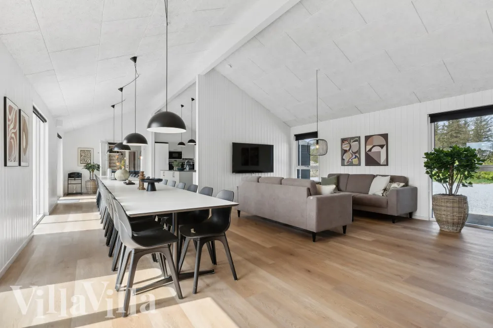 I det stora vardagsrummet kan ni samlas runt det långa matbordet för gemensamma måltider, spel eller mysiga stunder. XL-köket är utrustat med två ugnar, två diskmaskiner och två kylskåp, så det är lätt att laga mat till många personer samtidigt.