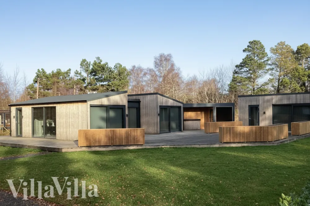 Semesterhuset är byggt i en modern och mysig stil med fokus på komfort och värme. Köket och vardagsrummet är kombinerade i ett öppet vardagsrum, där semestermåltider, spel och samtal flyter naturligt ihop. Köket är utrustat med allt du behöver för att enkelt laga mat till alla, medan vardagsrummet inbjuder till avkoppling med en soffgrupp, Smart-TV och sällskapsspel.