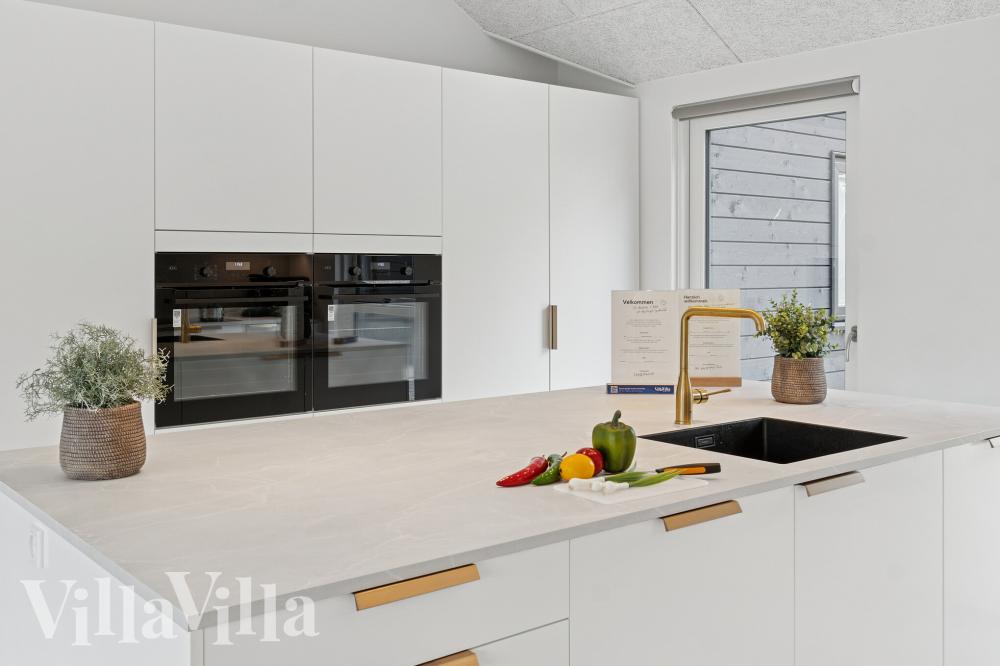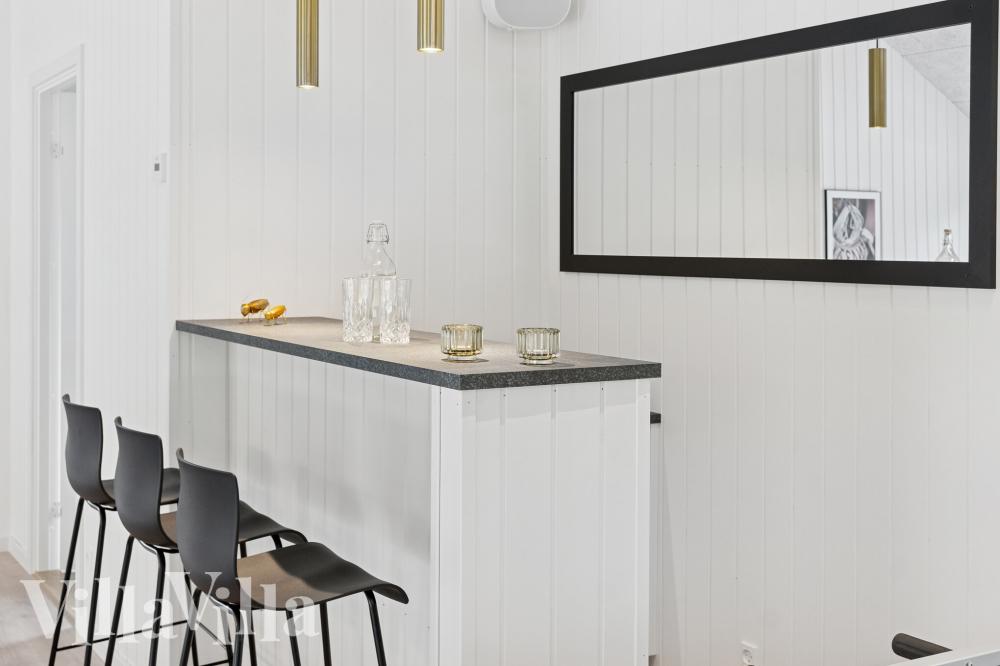 Det öppna och funktionella XL-köket är husets samlingspunkt, där hela familjen kan laga och avnjuta måltider tillsammans. Med två ugnar, två diskmaskiner och två kylskåp finns det gott om plats och praktiska lösningar för stora grupper. Vid det långa matbordet kan ni samlas runt maten, och det skapas en extra mysig stämning när mörkret faller.