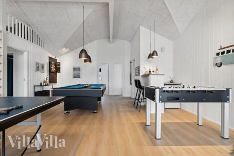 Ni hittar också en mängd aktiviteter. Inomhus finns aktivitetsrummet fyllt med underhållning för alla åldrar. Här kan ni tävla i biljard, bordtennis, dart och bordsfotboll. När det är dags att ta en paus från tävlingarna kan ni njuta av en kall förfriskning från husets bar – ta bara med er era favoritdrycker. Utöver aktivitetsrummet har huset också sin alldeles egna poolavdelning. Här kan både stora och små roa sig och njuta av en avkopplande simtur. Från både poolrummet och aktivitetsrummet kan man gå direkt ut till den delvis övertäckta terrassen med terrassvärmare, där ni med fördel kan förlänga sommarkvällarna med en läcker grillmiddag som avnjuts i terrassens fina trädgårdsmöbler.