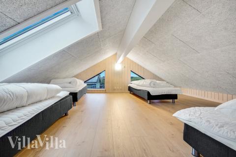 Huset är väl inrett med tre sovavdelningar med var sitt badrum. Har ni barn eller tonåringar som gärna vill sova ihop passar loftet utmärkt. Här finns det plats för fyra personer. Loftet har dessutom tv, så att ni inte behöver bråka om fjärrkontrollen i vardagsrummet.