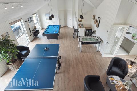 I direkt anslutning till köket/allrummet ligger aktivitetsrummet, som erbjuder underhållning för alla åldrar. Här kan ni utmana varandra i biljard, bordtennis, bordsfotboll och dart, spela PlayStation 5 eller koppla av i husets bar. Aktivitetsrummet leder också till två av de tre sovavdelningarna.