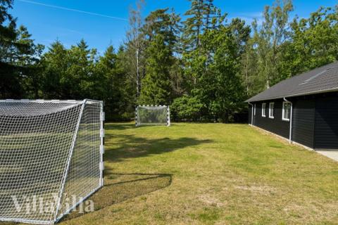 På sommarhusets stora terrass kan man grilla och koppla av under den danska sommaren. En del av terrassen är övertäckt, så man kan grilla i alla väder. I den stora trädgården kan man spela boll och barnen kan gunga och hoppa på studsmattan.