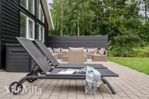 Den stora terrassen inbjuder till mys i den stora loungen, där du kan koppla av och njuta av gasolelden samtidigt som du tänder den stora Weber-gasolgrillen. När det är dags att äta kan du dra dig tillbaka under den täckta terrassen och värma dig med de infraröda terrassvärmarna, där du kan njuta av vädret året runt.