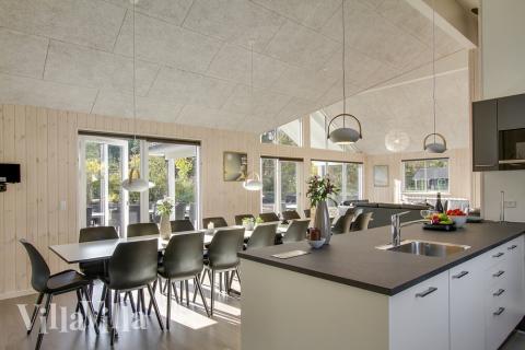 Detta semesterhus ligger i Asserbo på norra Själland. Till de vita sandstränderna längs Danska rivieran är det endast en till två kilometer, och här kan du också ta härliga promenader och cykelturer. Ett intressant utflyktsmål i närheten är slottsruinen Asserbo, som under flera århundraden låg begravd under sanddyner. Mitt i semesterhuset ligger det stora sällskapsrummet med pentry, matplats och vardagsrum. Pentryt har två diskhoar, kylskåp och diskmaskiner och även den övriga utrustningen är anpassad för 18 personer. Matbordet har tillräckligt... Läs mer