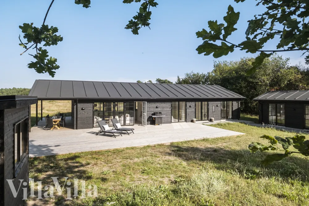 Detta rymliga, moderna sommarhus är byggt för närvaro, samvaro och minnesvärda upplevelser. En semester här innebär lugn och ro och avkoppling framför allt annat. Fönstren sträcker sig från golv till tak och släpper in ljuset utifrån för en naturnära inomhusmiljö, samtidigt som de klara färgerna och kvalitetsmaterialet skapar en inbjudande och avslappnande atmosfär. Ni kan samlas för att laga mat i det välutrustade köket, spendera långa middagar tillsammans vid matbordet och ta det lugnt i alkoven med en bra bok... Läs mer