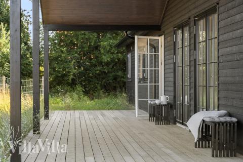 Detta rymliga, moderna sommarhus är byggt för närvaro, samvaro och minnesvärda upplevelser. En semester här innebär lugn och ro och avkoppling framför allt annat. Fönstren sträcker sig från golv till tak och släpper in ljuset utifrån för en naturnära inomhusmiljö, samtidigt som de klara färgerna och kvalitetsmaterialet skapar en inbjudande och avslappnande atmosfär. Ni kan samlas för att laga mat i det välutrustade köket, spendera långa middagar tillsammans vid matbordet och ta det lugnt i alkoven med en bra bok eller ett brädspel. Morgonkaffet kan avnjutas på terrassen medan barnen leker i trädgården, och de långa sommarkvällarna blir endast ljusare och varmare i glöden från grillen.