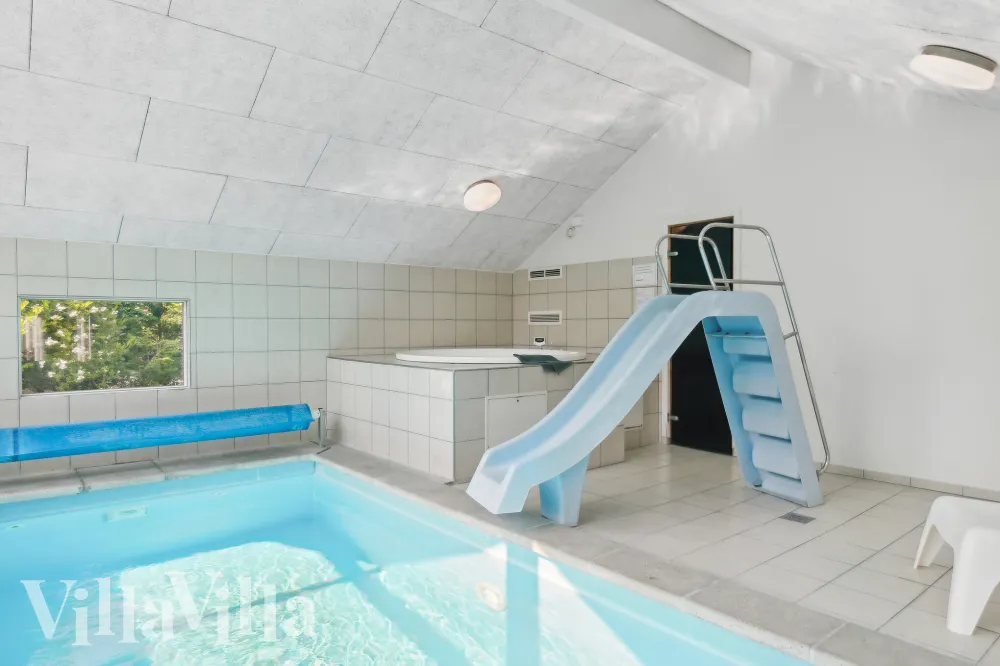 Sommarhuset har egen 15 m2 swimmingpool med rutschbana och motströmsanläggning där man kan bada och plaska i timmar. I poolområdet finns också ett härligt spa och bastu, så här finns också goda möjligheter för avkoppling.