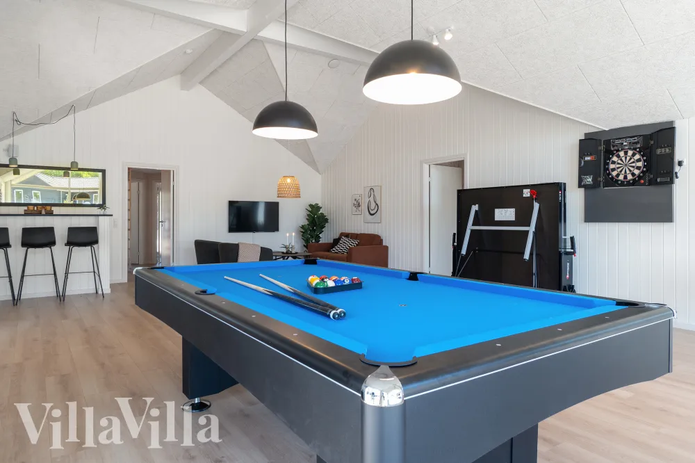 Aktivitetsrummet är ytterligare en höjdpunkt, där hela gruppen kan tävla i biljard, bordtennis, dart och bordsfotboll. Här finns också en bar med kylskåp, så att ni enkelt kan njuta av kalla drycker under tiden.