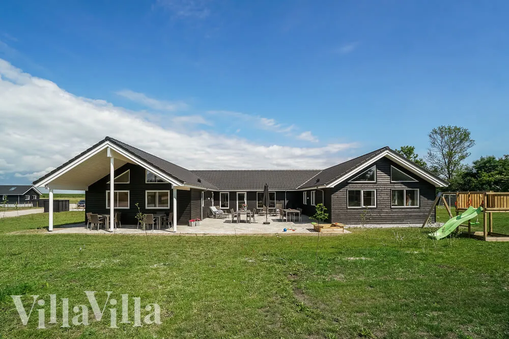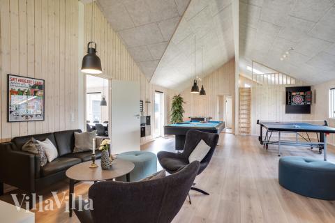 Detta stora lyxsommarhus har plats för 20 personer och är fullt av aktiviteter som bjuder in till många timmars skoj och lek. Oavsett årstid garanteras bad tack vare den 20 m² stora inomhuspoolen med vattenrutschkana. Den romerska trappan gör det enkelt för alla att ta sig ner i poolen. I poolavdelningen finns också ett bubbelbad och en härlig bastu. Sommarhuset har ett fint kök/allrum med högt i tak och stora fönster samt utgång till terrassen. Det stilrena köket är utrustat... Läs mer