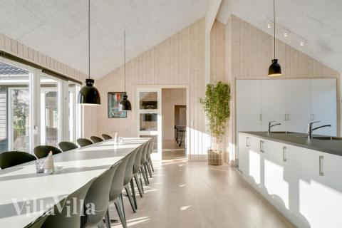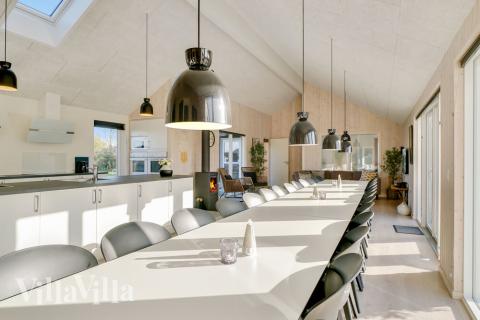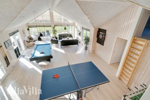 Detta sommarhus har plats för 26 personer och inbjuder till många timmars skoj och lek. Sommarhuset har nämligen ett separat ”lekrum” med möjlighet till massor av olika aktiviteter. Här finns bland annat bordtennis, biljard och bordsfotboll. Ni kan också spela dart eller PlayStation 4.