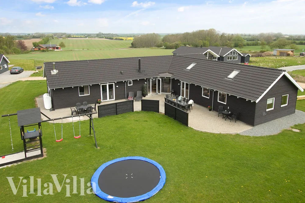 Den danska sommaren kan njutas i sköna trädgårdsmöbler på den stora terrassen. I trädgården som omringar huset har man även tänkt på de mindre gästerna i form av gungor och sandlåda.