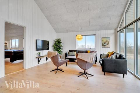Inuti sommarhuset finns en mängd olika aktiviteter och underhållningsmöjligheter. Ingen gäst kommer att få tråkigt, varken under sommaren eller under vintern. Ett dopp i den 18 m2 stora swimmingpoolen med vattenrutschbana, romersk trappa och motströmsanläggning är möjligt året runt. Alternativt kan ett varmt dopp tas i rummets bubbelpool, och bastun bidrar också till den avslappnade känslan.