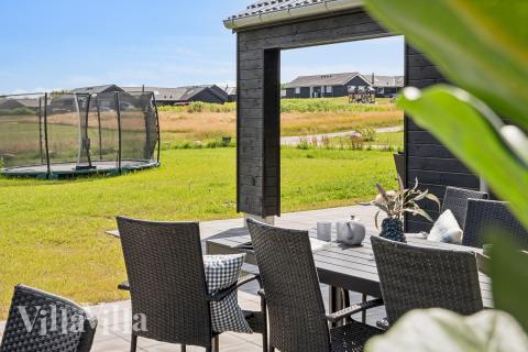 För de yngsta gästerna finns det en studsmatta som kan användas i timmar. Medan barnen leker kan de vuxna koppla av i trädgårdsmöblerna och grilla på terrassens grill.
