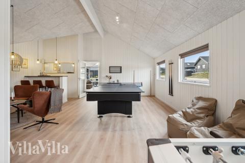 Aktivitetsrummet, som är anslutet till det kombinerade kök- och vardagsrummet, bjuder på massor av skoj. Här finns biljard, bordtennis, bordsfotboll och dart, samt en bar där ni kan njuta av något att dricka medan ni tävlar i de många spelen. Dessutom kan ni koppla av i loungemöblerna i aktivitetsrummet, kanske med en film, vilket ger en perfekt balans mellan aktivitet och avkoppling.