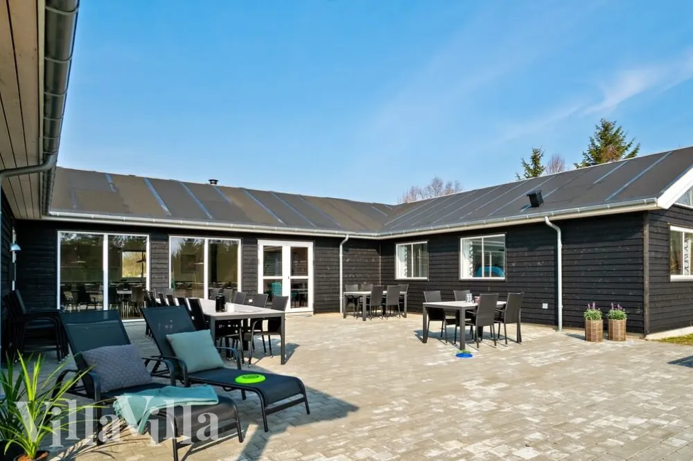 Detta sommarhus ligger i vackra omgivningar endast en timmes bilresa från den dansk-tyska gränsen. I sommarhuset finns det gott om plats för 24 personer som vill ha semester under samma tak och tillbringa tiden med en massa spel och roliga aktiviteter. I det stora och rymliga aktivitetsrummet finns det gott om möjligheter för aktiviteter och fart och fläkt. Här kan ni utmana varandra i bordtennis, bordsfotboll eller dart. Det finns också möjlighet att spela PlayStation 4 (kom ihåg att ta med spel) eller biljard. I hörnet av aktivitetsrummet ligger lyxhusets bar med kylskåp och barstolar.