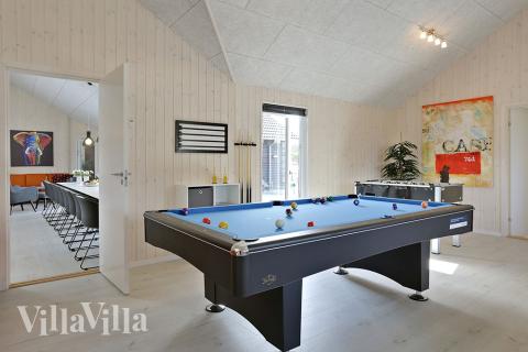 Oavsett väder finns det alltid något att göra i denna sommarstuga! I det stora aktivitetsrummet finns det både biljardbord, bordtennisbord, bordsfotboll, dart och Playstation 4. Om man vill ta en paus mellan spelen kan man hänga i stugans egen bar som också har kylskåp så att man kan servera iskalla drickor.