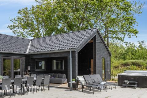 Om det danska vädret tillåter kan ni dessutom använda husets wellnessavdelning utomhus, som erbjuder bubbelpool och bastu utomhus samt en utomhusdusch. Här kan ni njuta av den friska luften och på kvällen även av stjärnhimlen. Vardagens stress och jäkt kan glömmas bort, och allt ni behöver göra är att njuta av varandras sällskap.