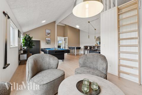 Härligt hus med pool och aktivitetsrum i Søndervig för 18 personer – nära strand och mitt i sanddynerna
