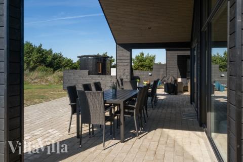I det västjyska semesterparadiset Vejers Strand ligger detta utmärkta poolhus för 14 personer. Med under en kilometer till Nordsjön, en kort promenad för att köpa glass i närområdet och endast åtta kilometer till semesterorten Blåvand är det svårt att hitta bättre förutsättningar. På den egna tomten fortsätter semesterstämningen, när den idylliska vackra trädgården i det etablerade semesterområdet möter den stilrena och trevliga inredningen i sommarstugan.